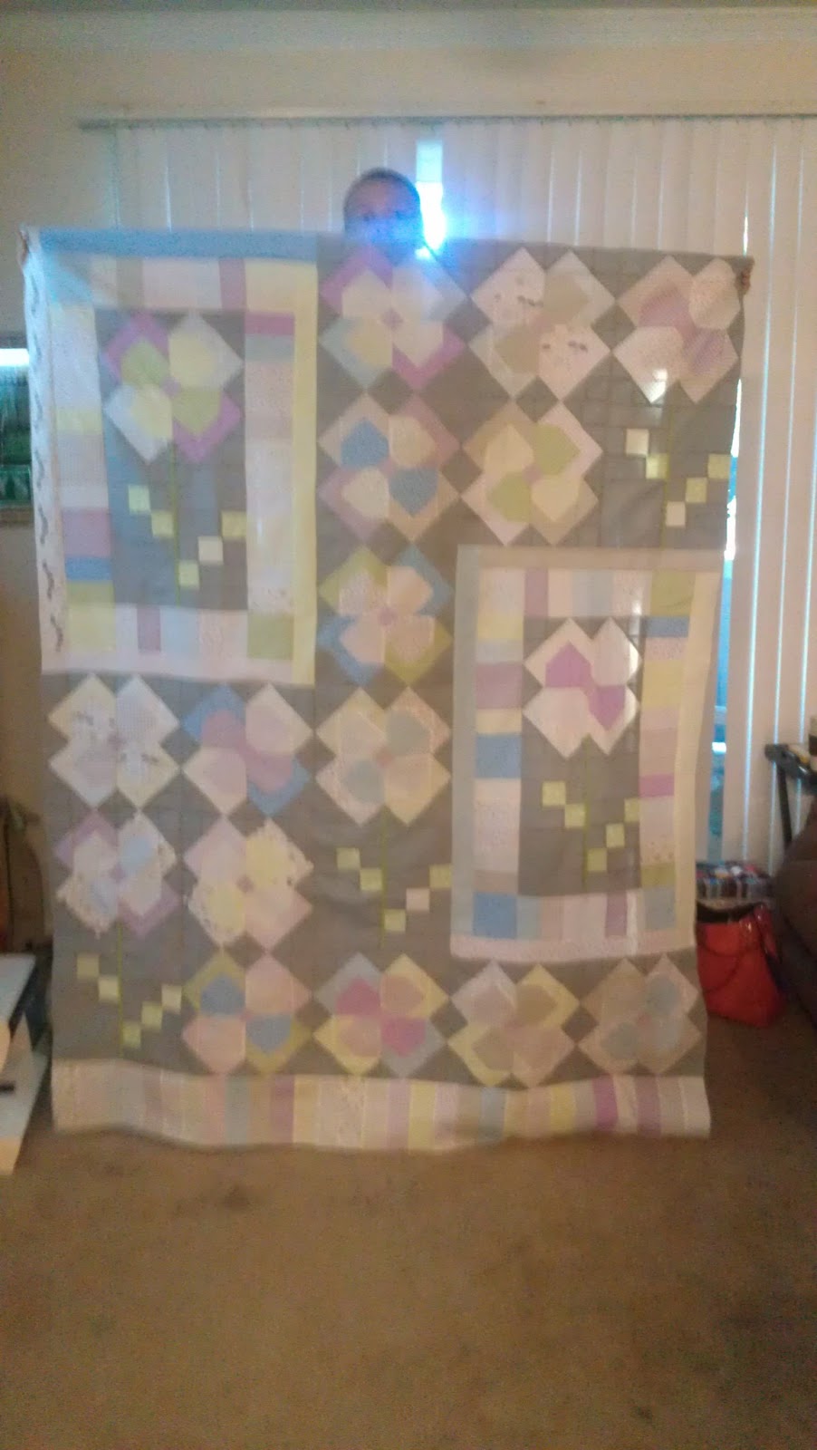 However after Ironong I noticed the mermaids scales had taken on a more rounded look with the colors changing to a more antique look. So now I will have to iron the other mermaid till her tail matches. I'm planning on doing some machine quilting around the edges and then a simple binding. I will also be adding some beads to each girl since the hands look like they are holding something.